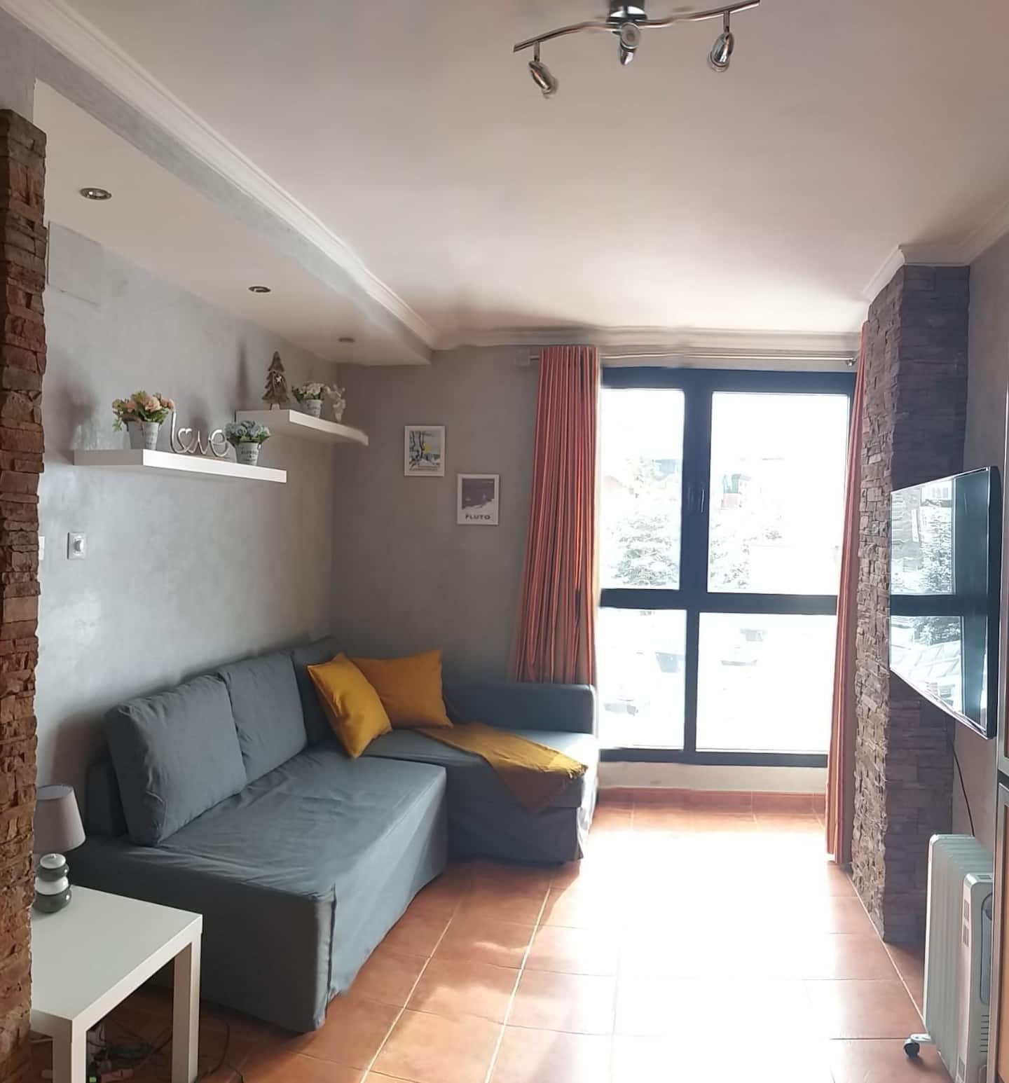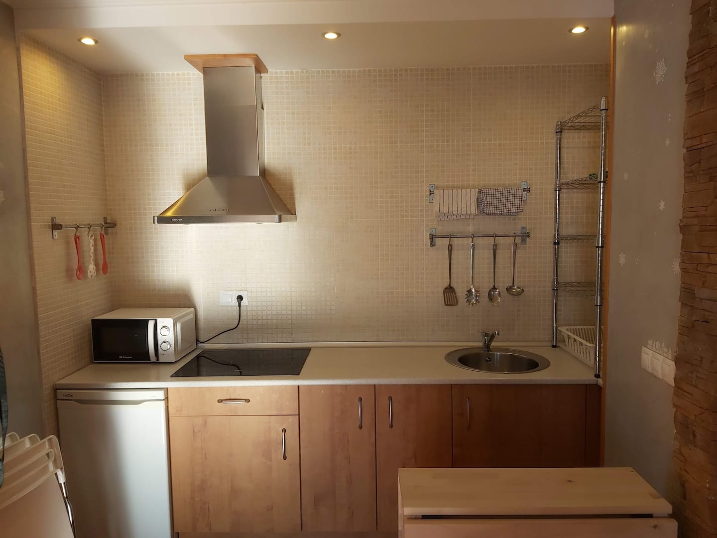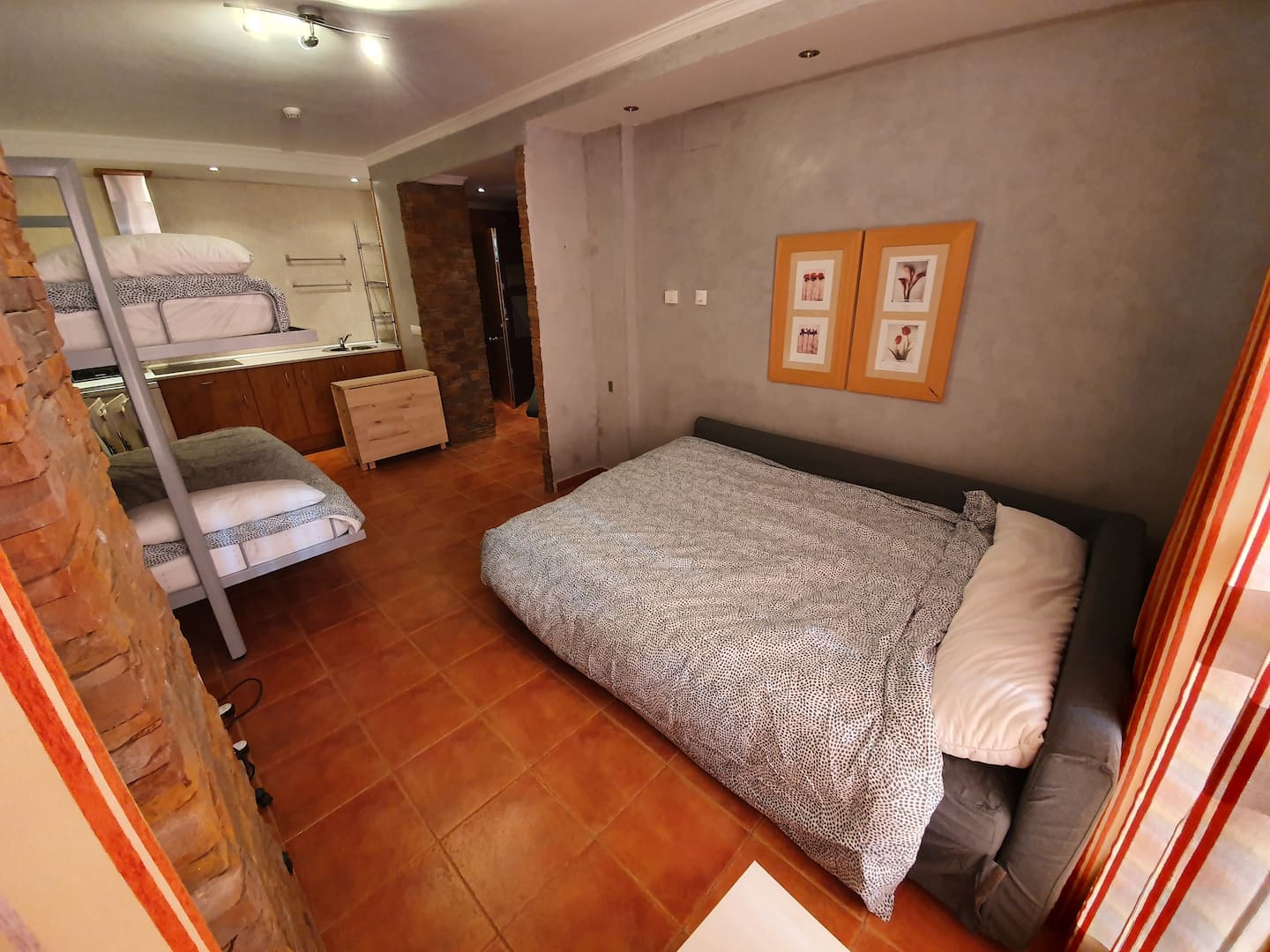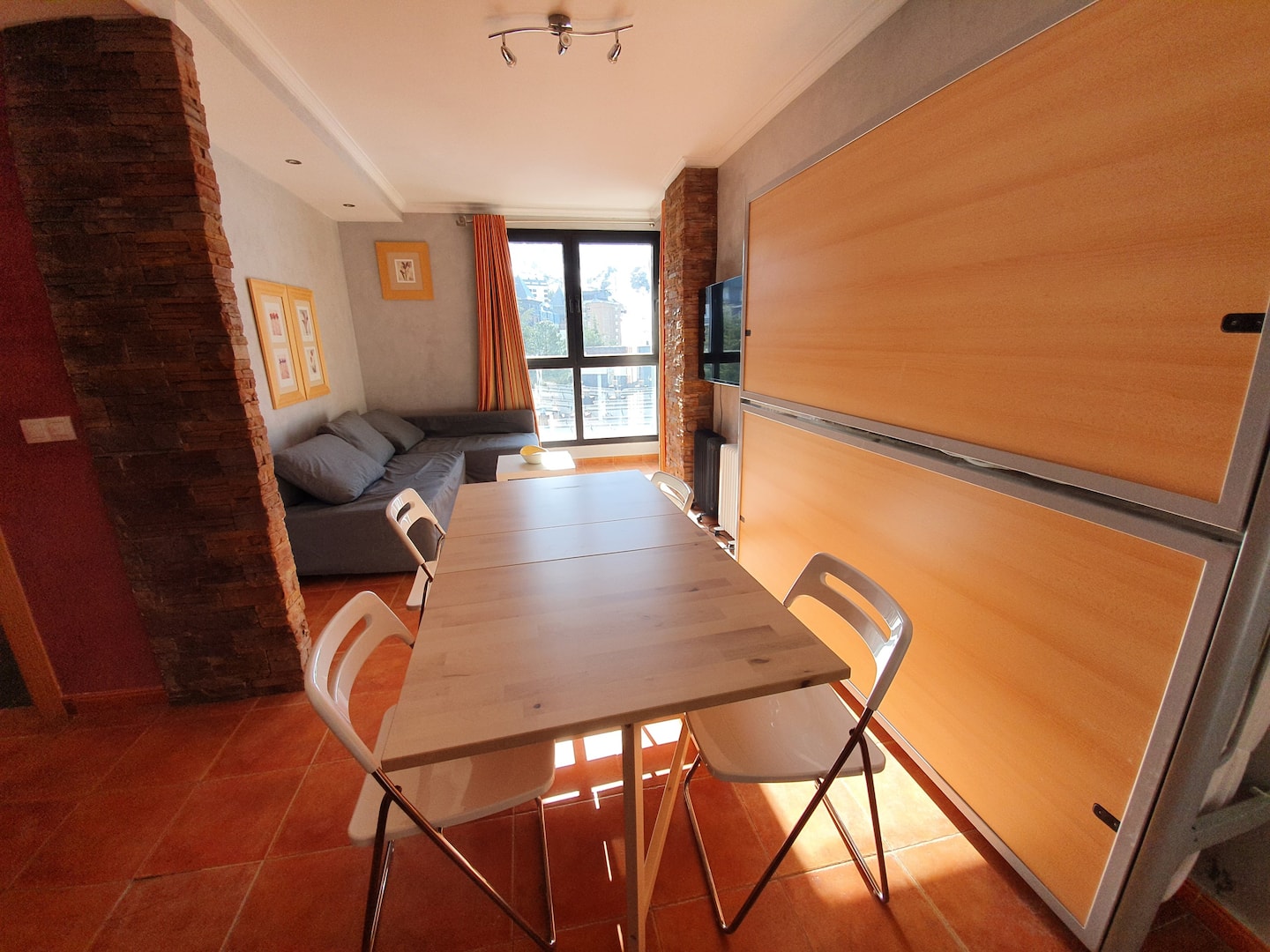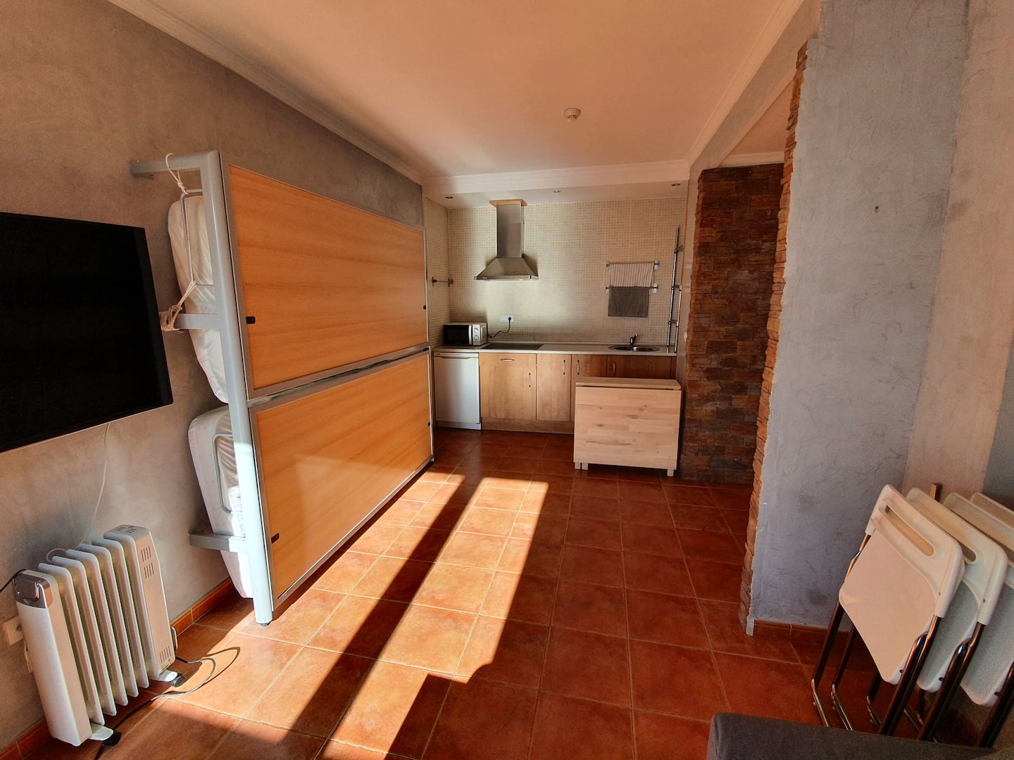 Apartamento con una habitación independiente al salón en la cual hay una litera. El salón cuenta con un sofá cama doble de matrimonio para 4 personas. En el salón tiene cocina americana completa y el apartamento tiene cuarto de baño completo con bañera y Wifi.