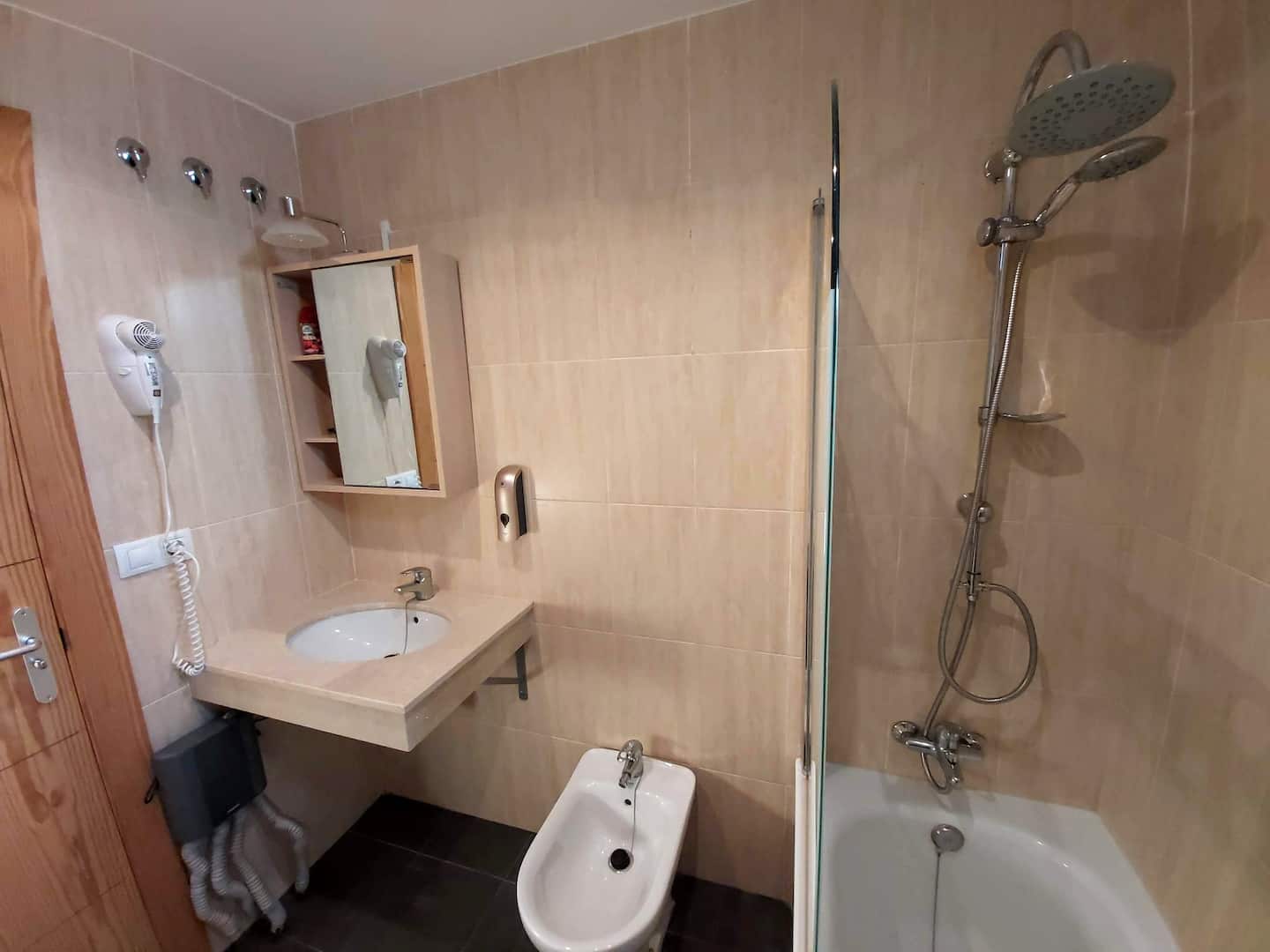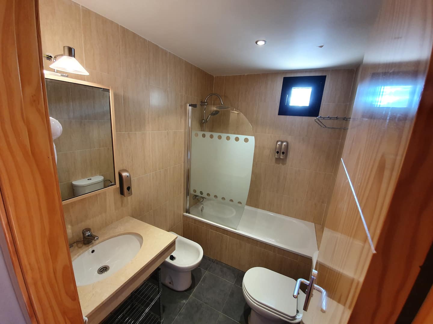 Cuarto de Baño tiene una bañera de 1,70 cm, secador de pelo, secador de botas, champú y gel para la ducha y lavabo.