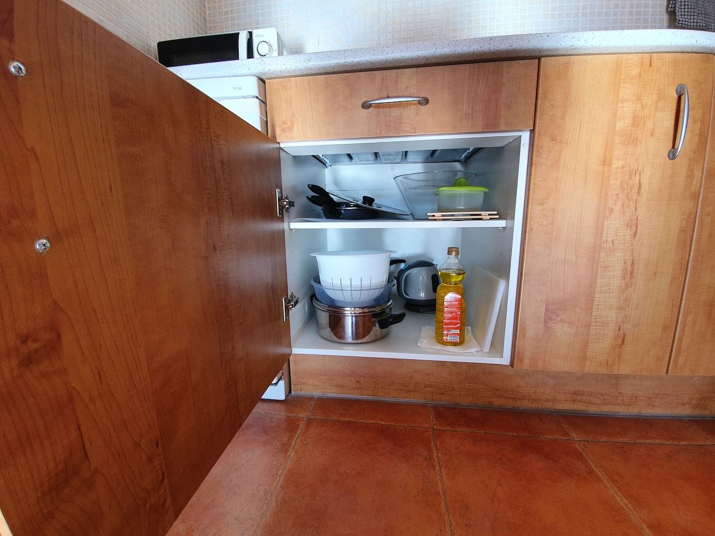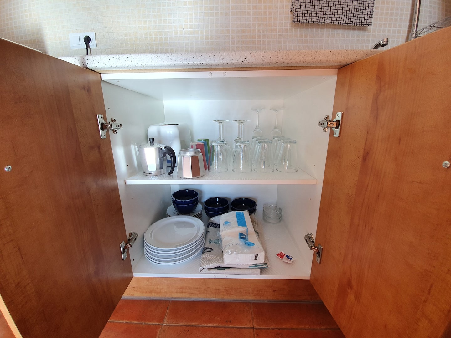 vitrocerámica de 4 fuegos, cafetera dolce gusto y cafetera italiana, con todos los utensilios y menaje de cocina para poder cocinar, sartenes, ollas , etc…
