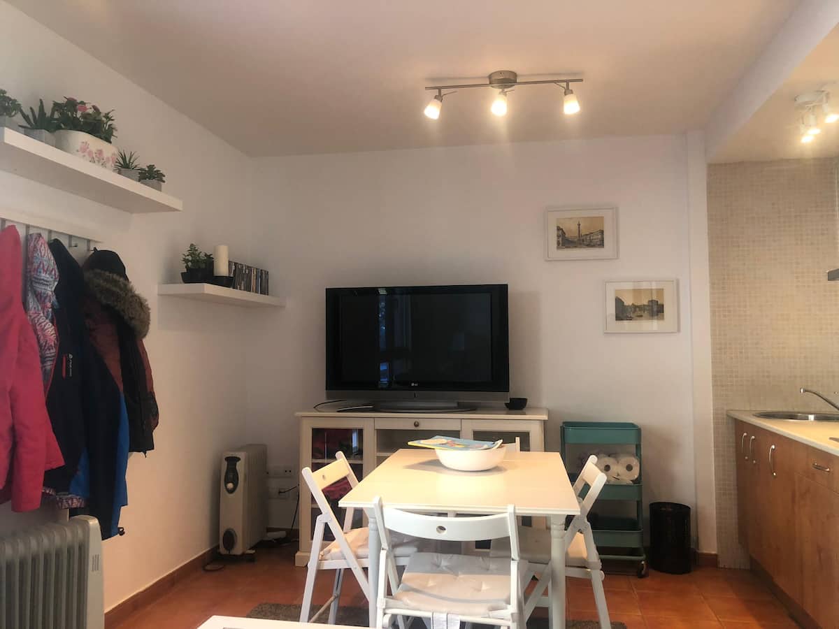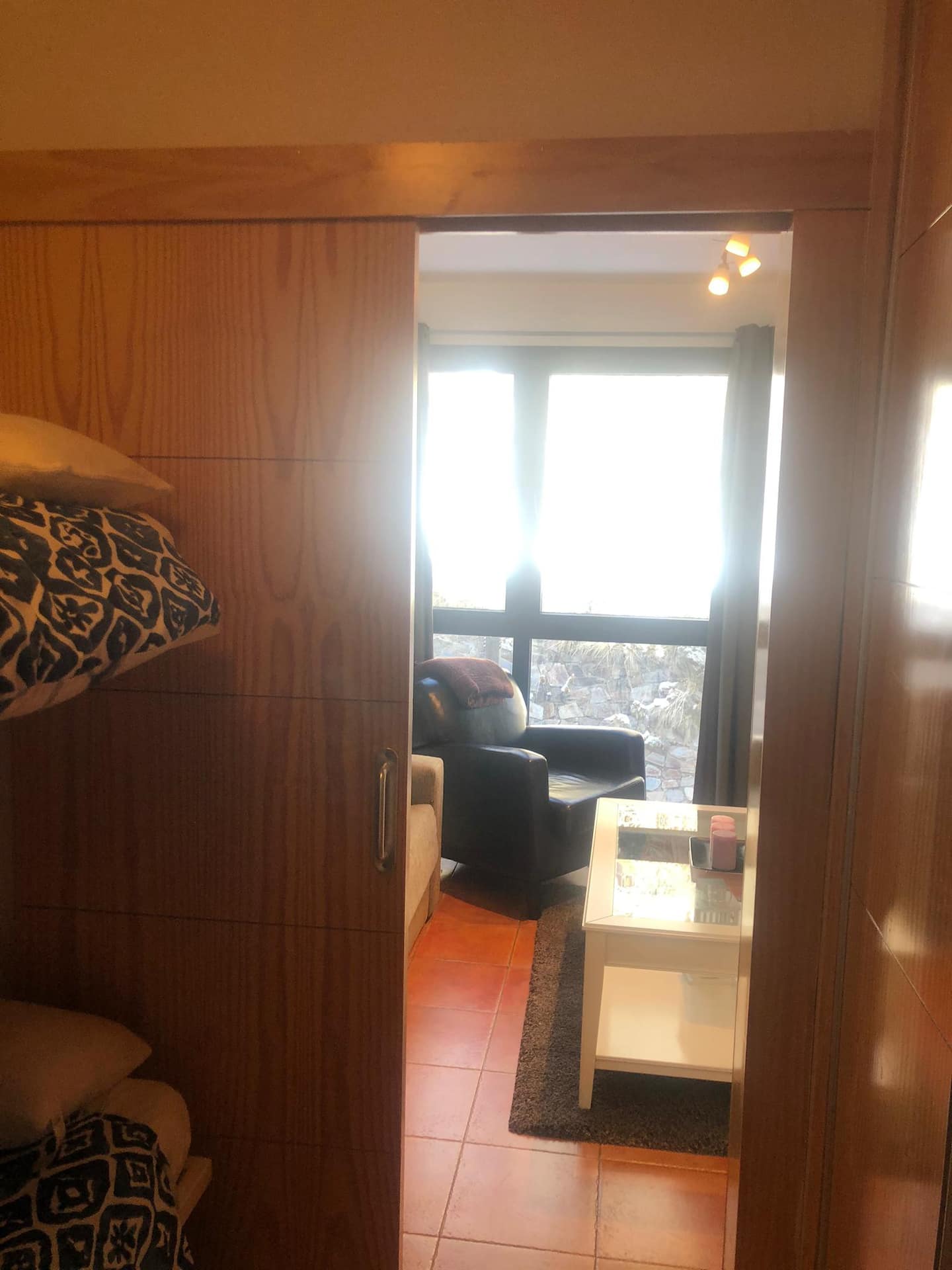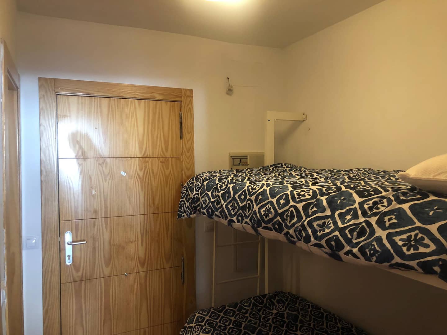 Apartamento con una habitación independiente al salón en la cual hay una litera. El salón cuenta con un sofá cama para 2 personas. En el salón tiene cocina americana completa y el apartamento tiene cuarto de baño completo con bañera y Wifi.