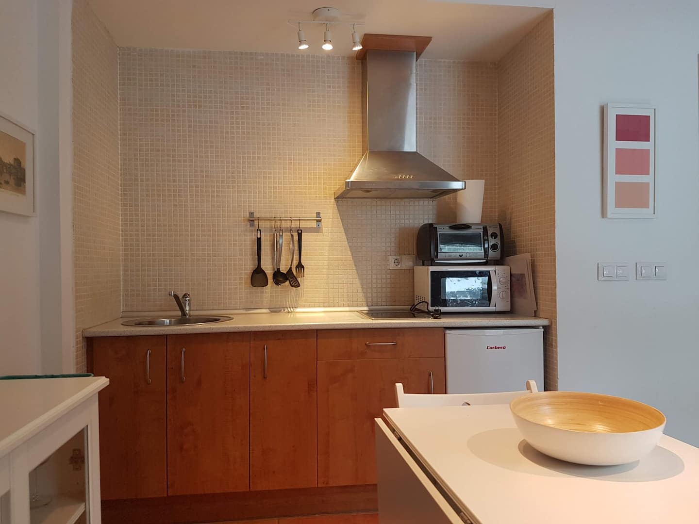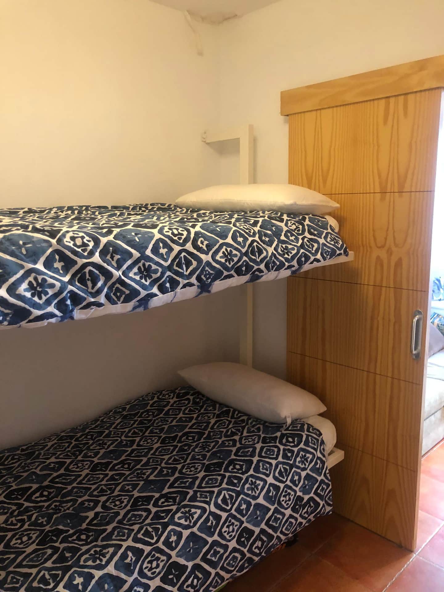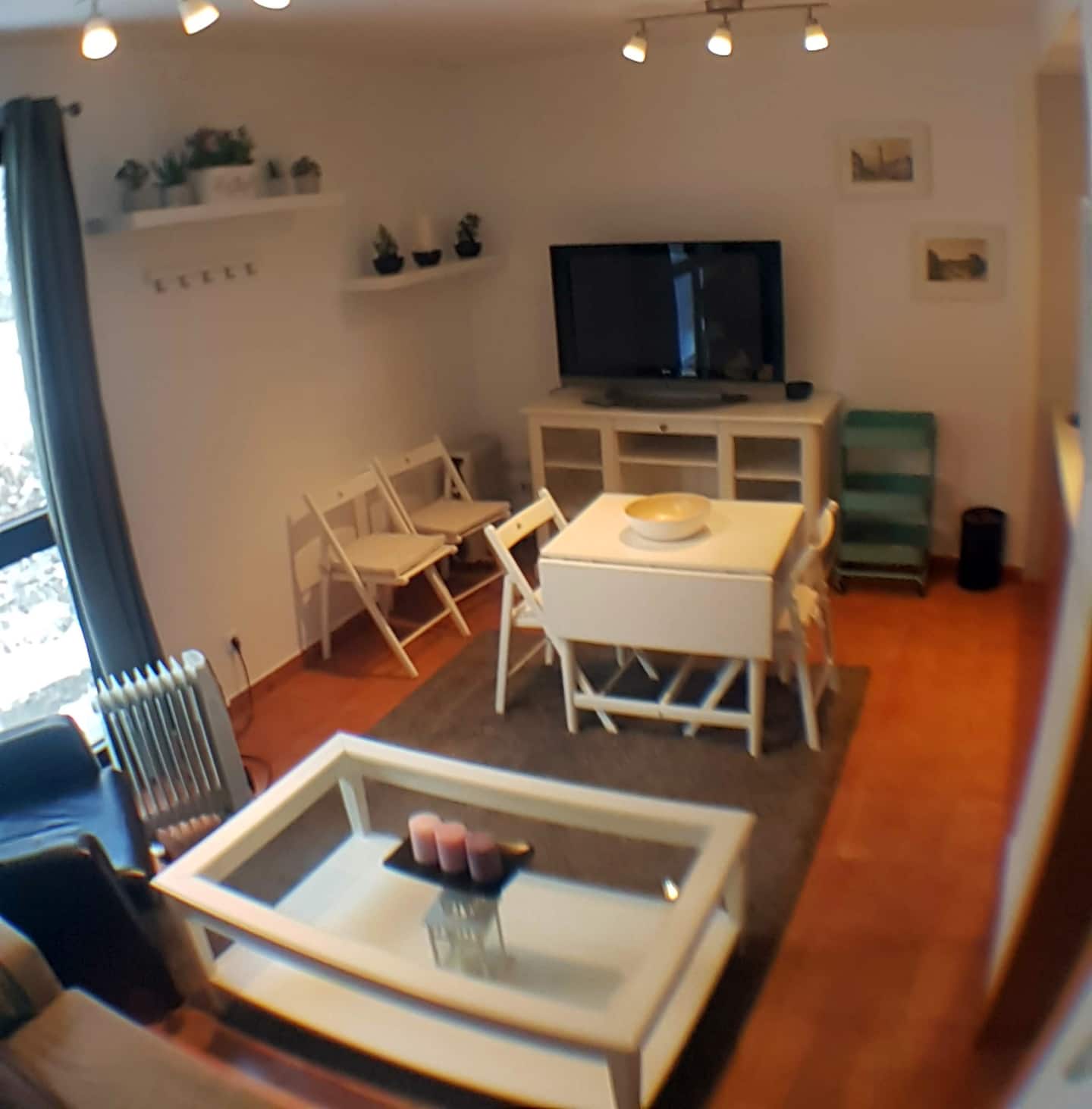 Apartamento con una habitación independiente al salón en la cual hay una litera. El salón cuenta con un sofá cama para 2 personas. En el salón tiene cocina americana completa y el apartamento tiene cuarto de baño completo con bañera y Wifi.