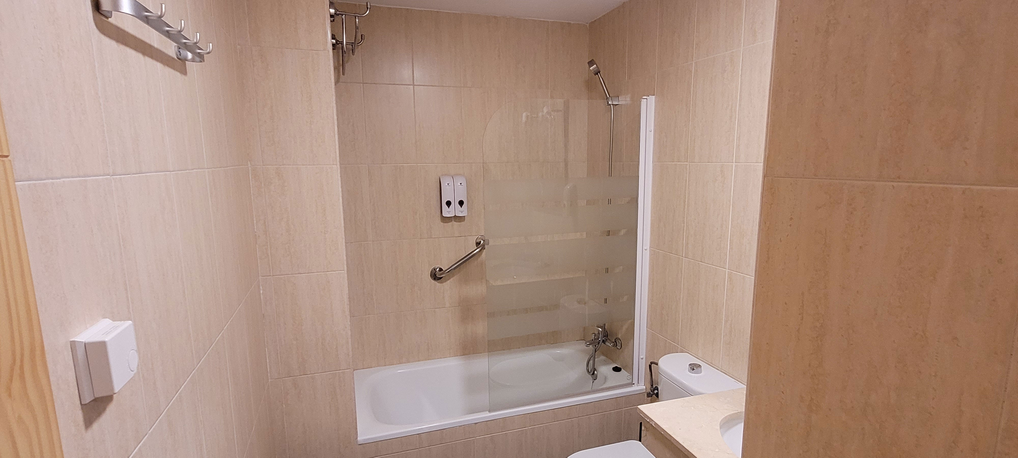 Cuarto de Baño tiene una bañera de 1,70 cm, secador de pelo, secador de botas, champú y gel para la ducha y lavabo.