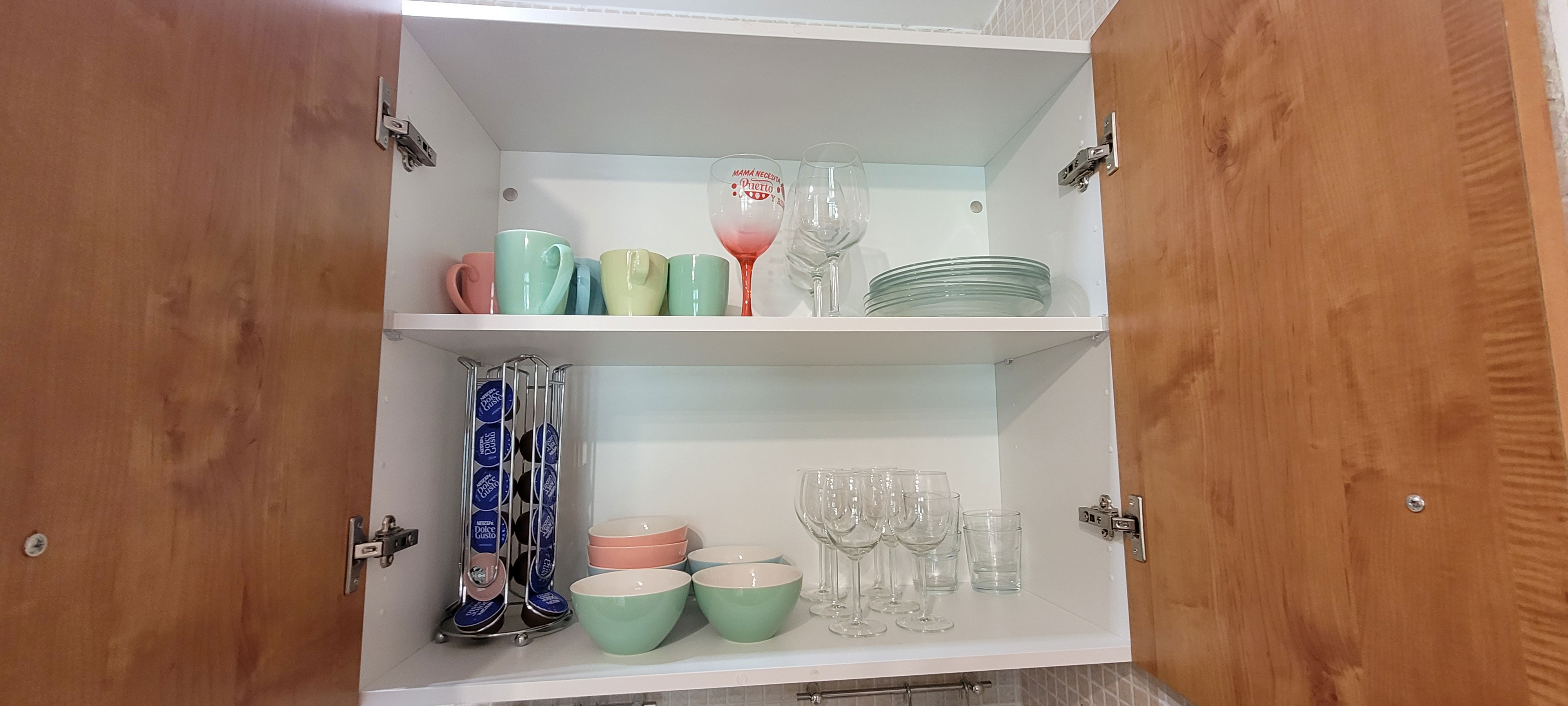 vitrocerámica de 4 fuegos, cafetera dolce gusto y cafetera italiana, con todos los utensilios y menaje de cocina para poder cocinar, sartenes, ollas , etc…